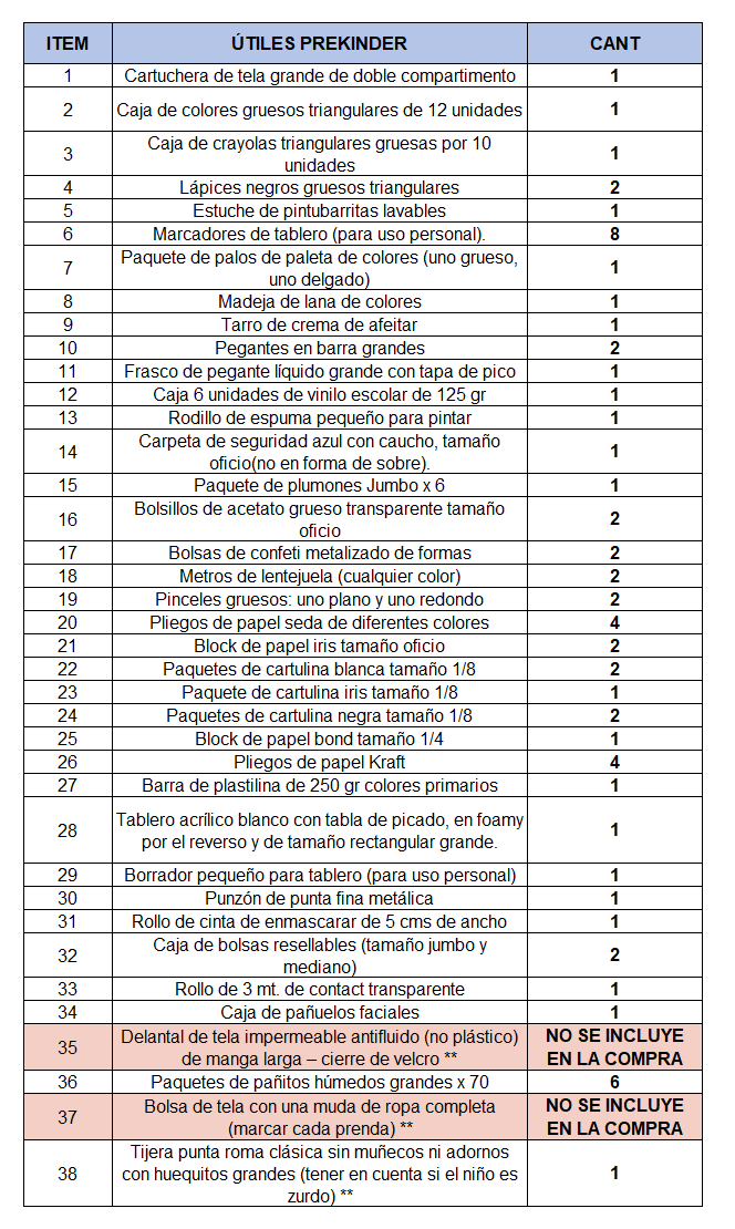 / KIT – ÚTILES DE PAPELERÍA PREKINDER